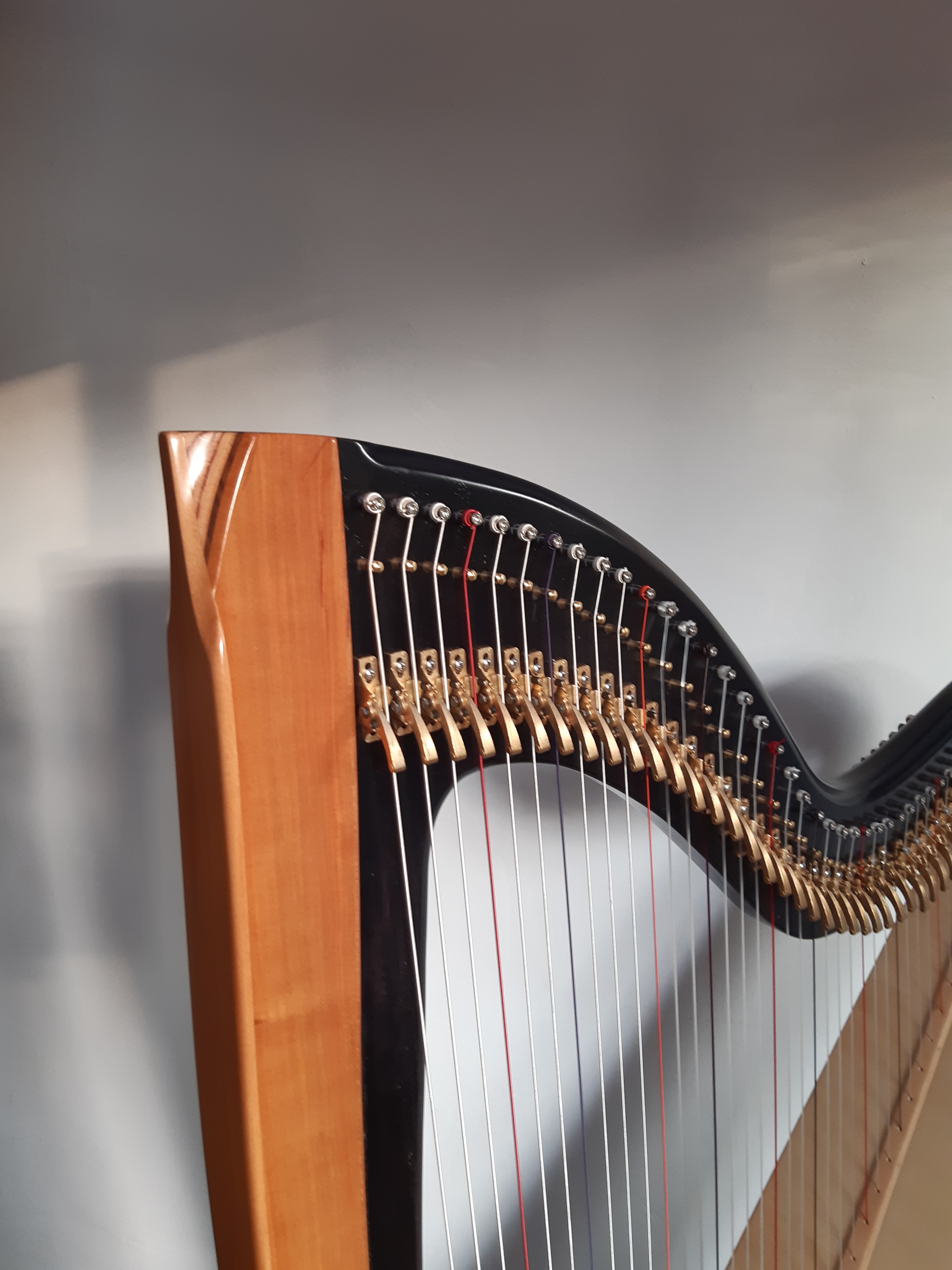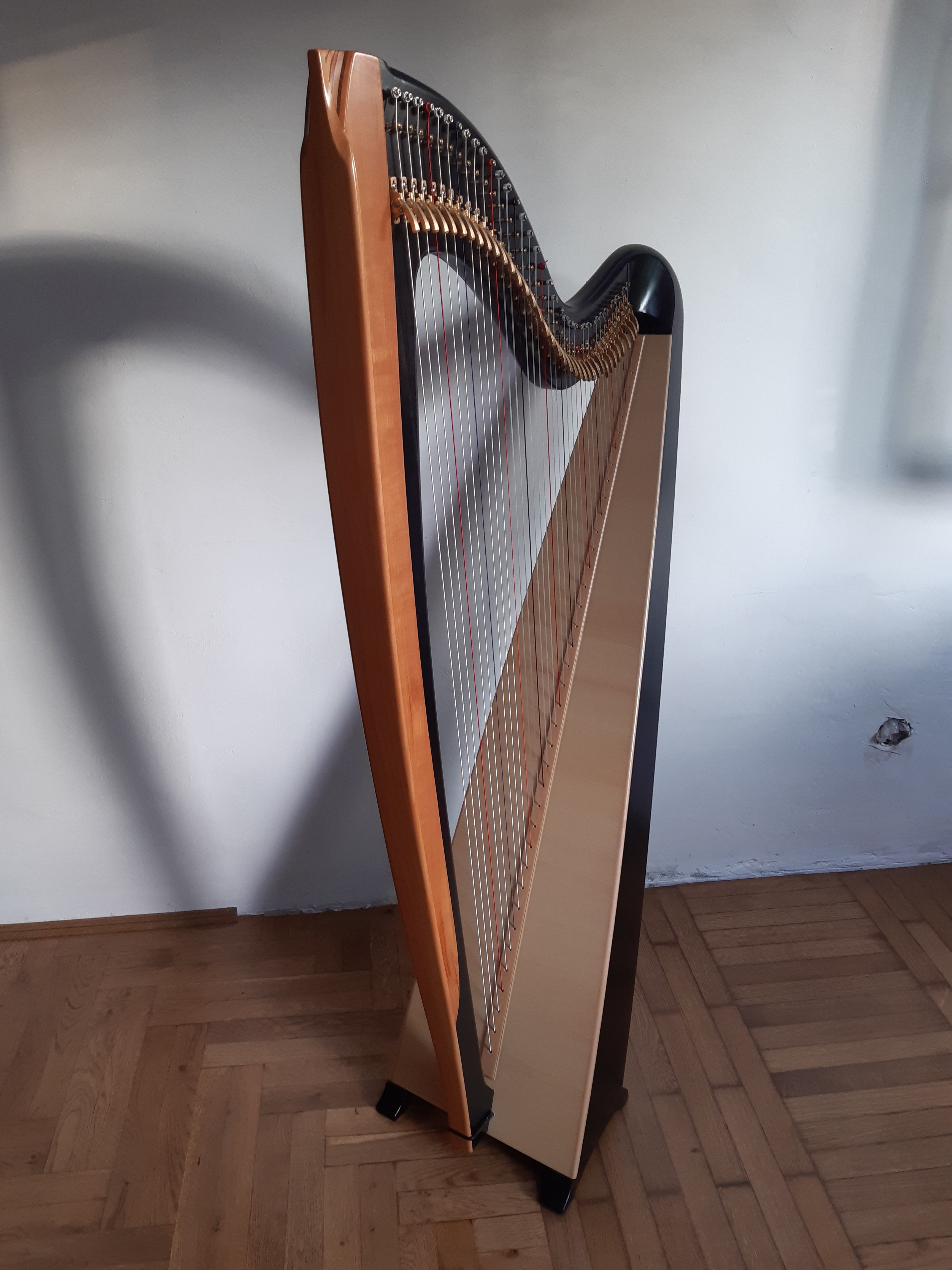 It is made specifically for therapeutic purposes, as the vibrations of the harp help the therapeutic work thanks to the wooden plate on the column.