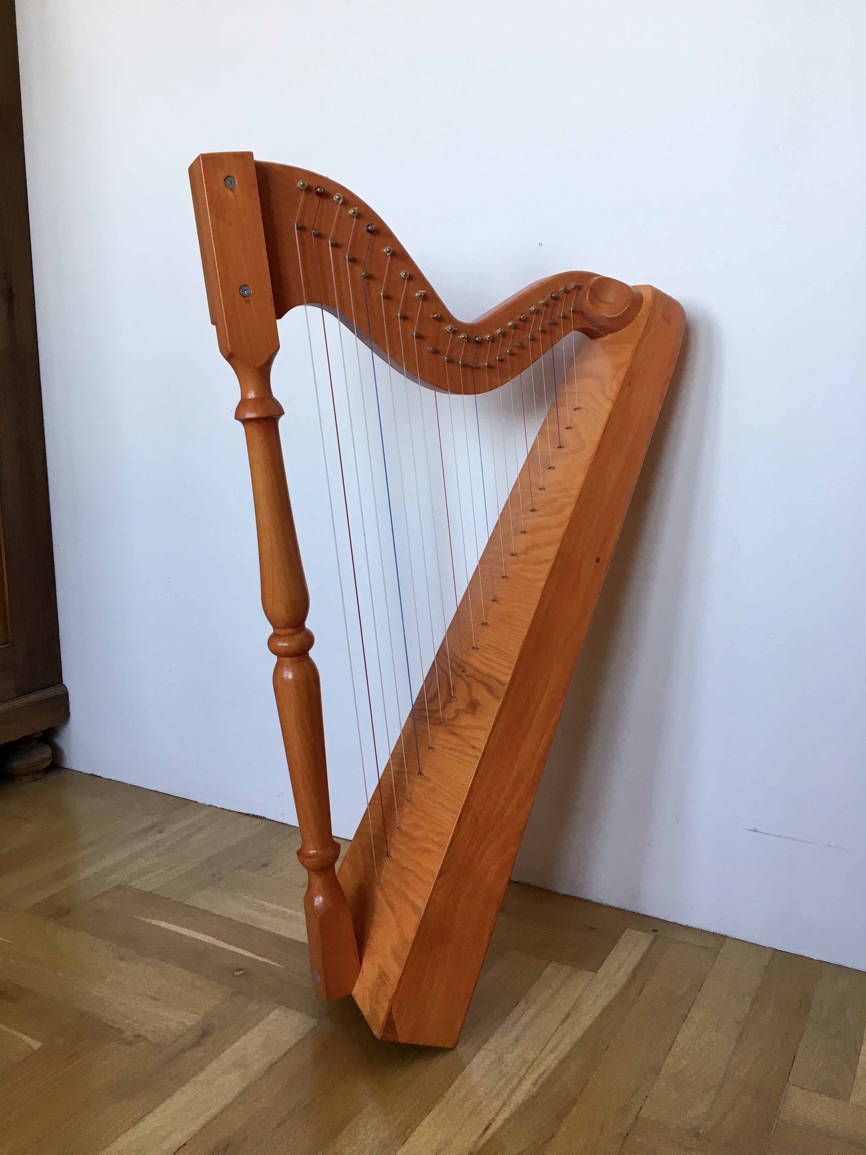Pillekönnyű, egyszerű kidolgozású, kezdőknek való hárfa.